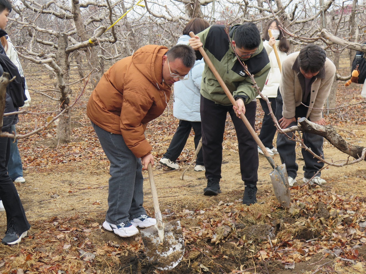 随后老师和同学们扛着铁锹走进田间地头,开展“学雷锋精神,扬劳动美德”活动,大家劳动热情高涨,干的热火朝天,一起挥动着铁锹为果园松土。