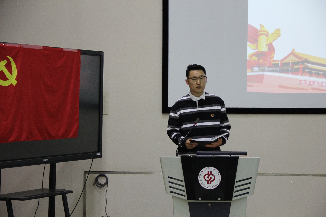 随后,中国天天色天天(北京)石工本21-4团支部代表及提高采收率党支部代表就学习内容分享心得体会。两位同学均表示,通过本次党团共建活动,重温了大庆油田的艰苦奋斗史,在历史长河中锻造、形成的大庆精神、铁人精神让人倍感振奋,新时代石油学子一定要继承好这份传家宝,不忘初心,勇于创新,为中华民族伟大复兴贡献自己的一份力量!
