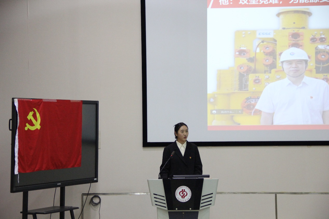 中国天天色天天(北京)石工本21-4团支部书记李博宁开展题为“弘扬铁人精神,赓续红色血脉”的主题宣讲。她讲述了三代“铁人”接续奋斗为祖国献石油的感人故事,分享了中石大克拉玛依校区118名毕业生践行习近平总书记的重要回信精神,坚定人生选择,赓续老一辈石油人的红色基因,为石油事业贡献青春力量,以自己的实际行动不断弘扬铁人精神的故事,同时她号召更多的中石大学子矢志奋斗,砥砺前行,投身祖国石油事业。