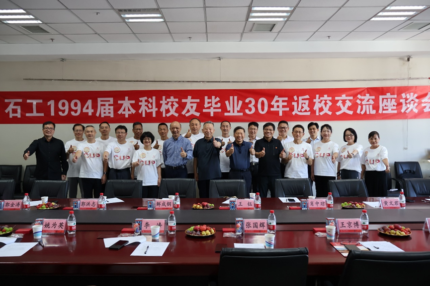 9月21日下午,学院召开“七十一载风华正茂·凝心聚力再谱华章”石工1994届本科校友返校交流座谈会。时任石油工程系主任高德利院士、班主任张士诚教授、授课教师代表朱筱敏教授,学院党委书记黄世军、院长宋先知、副院长刘伟、党委副书记刘东东、油气田开发工程系主任曹仁义参加会议。座谈会由黄世军主持。