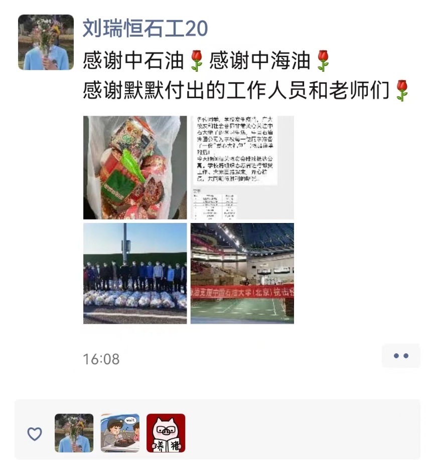 11月9日以来,一场突如其来的疫情,扰乱了我们学习、工作和生活的节奏。为快速、有效应对疫情,学校迅速吹响战疫集结号,全体中石大人投入到这场以快制快的战斗中。学生们闻令而“静”,石油工程学院的教师们逆向而行、迅速行动,投入到校园疫情防控阻击战中。上下同心、风雨同舟,学院教师第一时间进驻校园、入住宿舍,为学生搬运物资,给学生送餐,带学生外出就医,用实际行动诠释师者担当,为学生健康保驾护航!