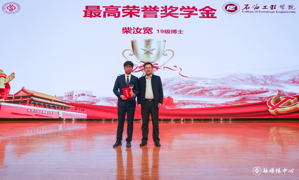 校党委副书记文永红为石油工程学院最高荣誉奖获得者颁奖,学校相关职能部门负责人分别为奖学金获得者、优秀辅导员、优秀班主任、党建先进个人与先进集体代表颁奖。