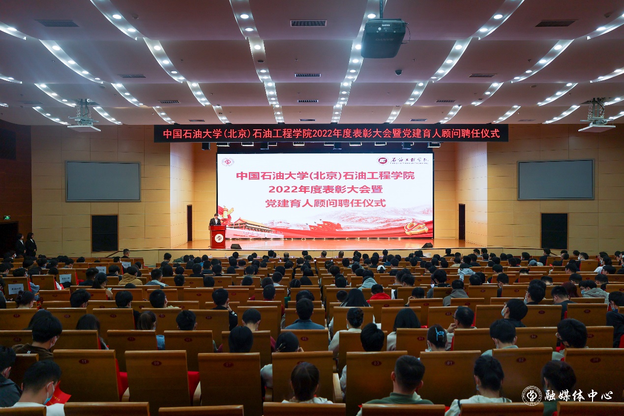 为深入学习贯彻党的二十大精神,培养能吃苦、敢担当、有理想、肯奋斗的新时代好青年,激励基层党支部和广大党员奋发进取、创先争优,推动学院党建与事业发展深度融合,3月9日,中石大石油工程学院在中油大厦三层报告厅举办2022年度表彰大会暨党建育人顾问聘任仪式。教育部党建联络员李杰、校党委书记陈峰、党委副书记文永红出席会议,学校相关职能部门负责人、石油工程学院班子成员和师生代表参加会议,石油工程学院院长宋先知主持会议。