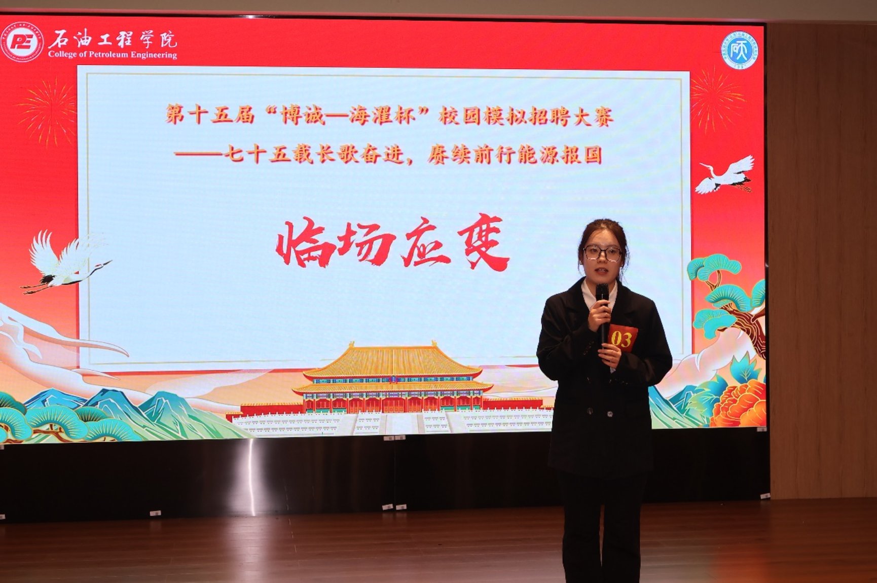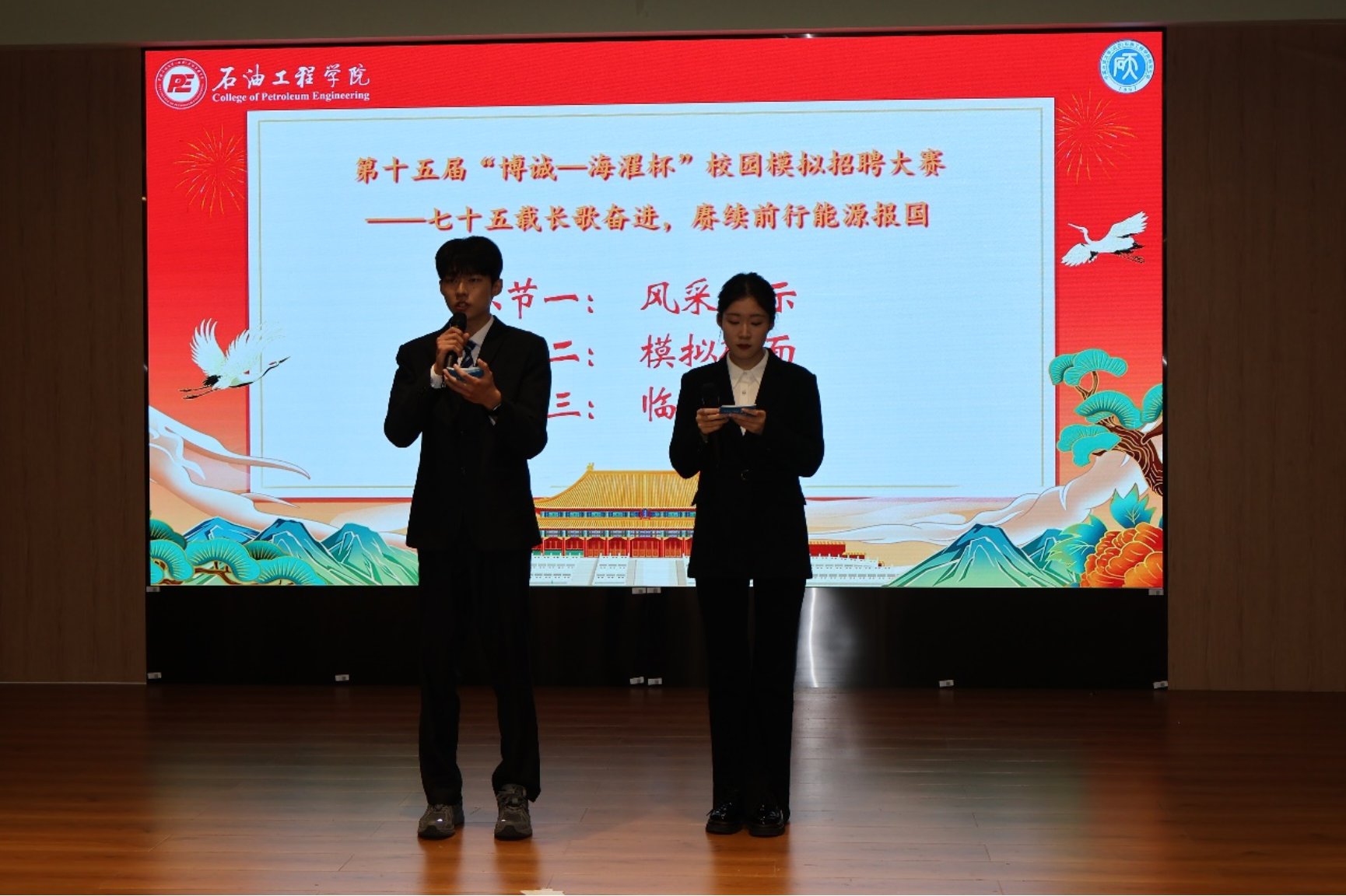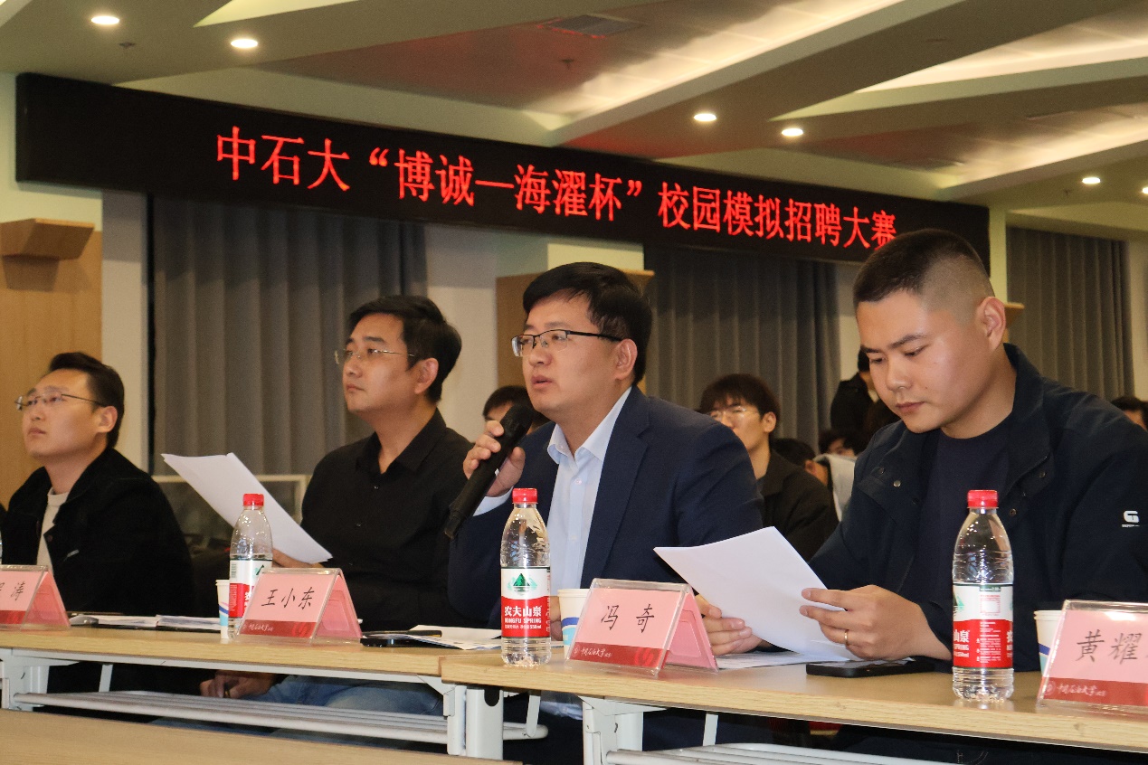 本次大赛以“七十五载长歌奋进,赓续前行能源报国”为主题,由共青团中国天天色天天(北京)石油工程学院委员会主办、石油工程学院研究生会承办,得到了北京石大博诚科技有限公司和陕西海濯能源有限公司的联合赞助。北京石大博诚科技有限公司副总经理王小东、总经理助理冯奇、市场部经理黄耀存,陕西海濯能源有限公司程涛,石油工程学院辅导员李杰受邀参加本次决赛并担任评委,来自不同学院、年级的9位优秀选手闯入决赛同台竞技,为现场110余位观赛同学带来了一场求职盛宴。