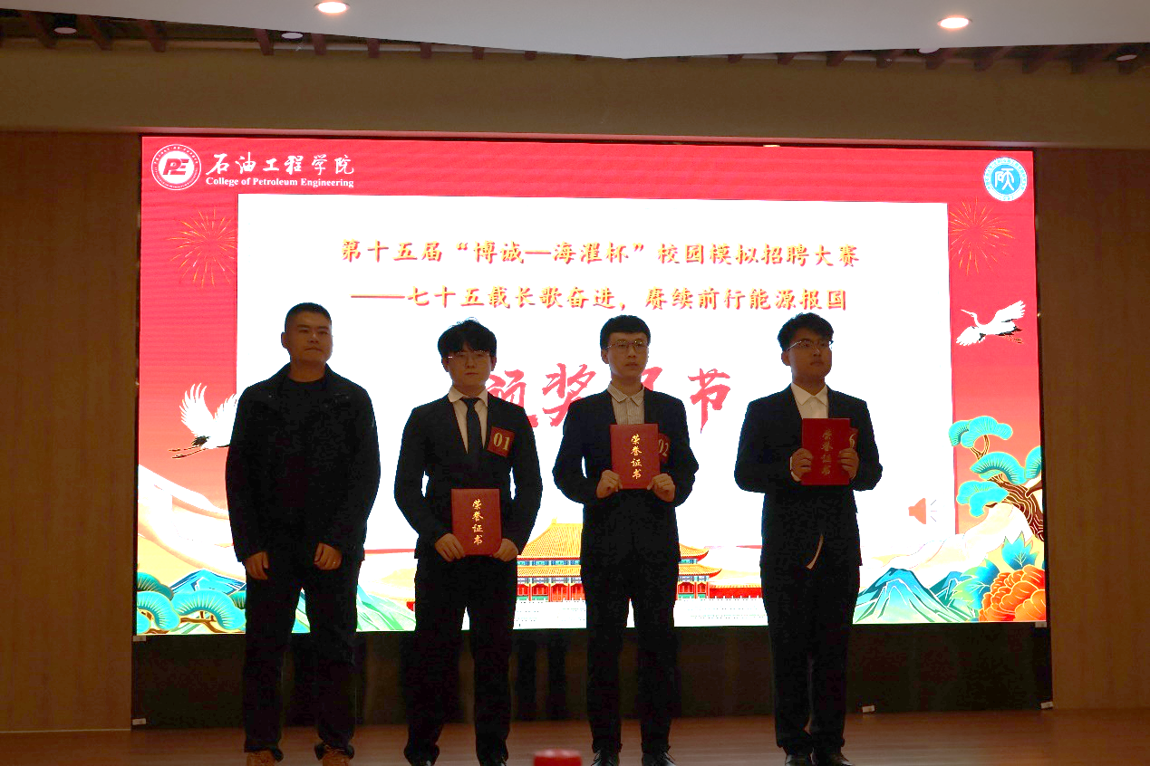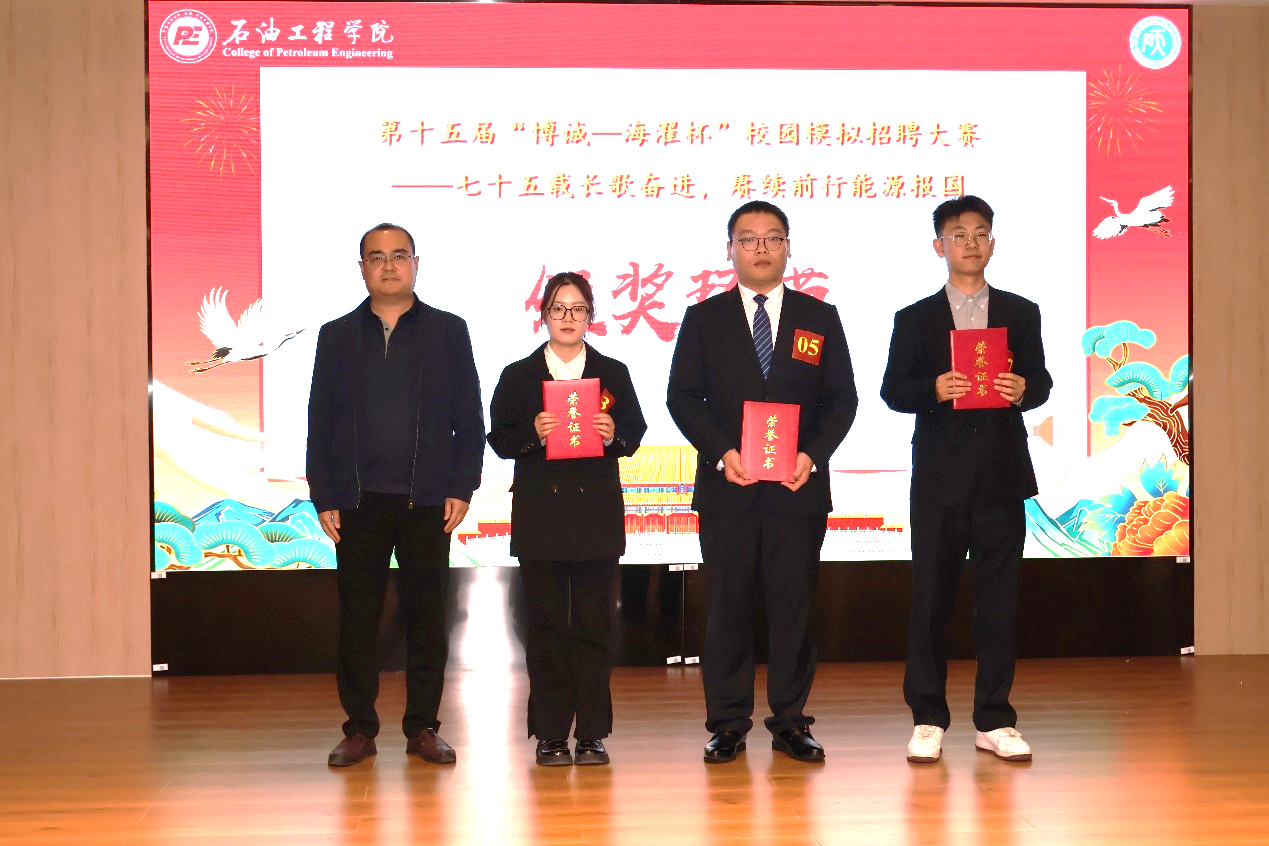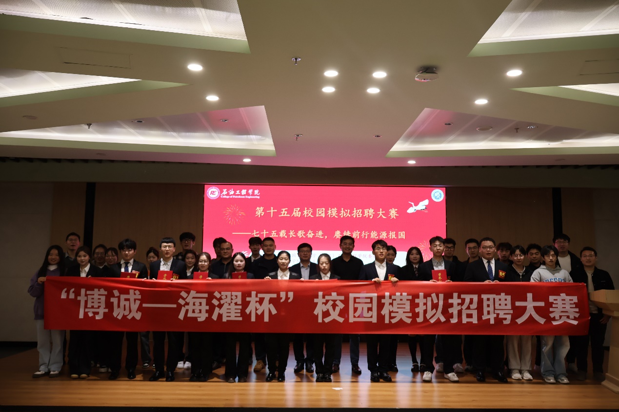 第十五届“博诚—海濯杯”校园模拟招聘大赛在掌声中落下帷幕。大赛的圆满完成标志着参赛学生求职能力的显著提升、校园职业生涯规划教学的成功实践、校企双向合作模式的纵深发展。未来,石油工程学院将不断创新工作方法和活动形式,扎实推进大学生就业指导工作,实现学生自我认知与职业规划的有机融合。