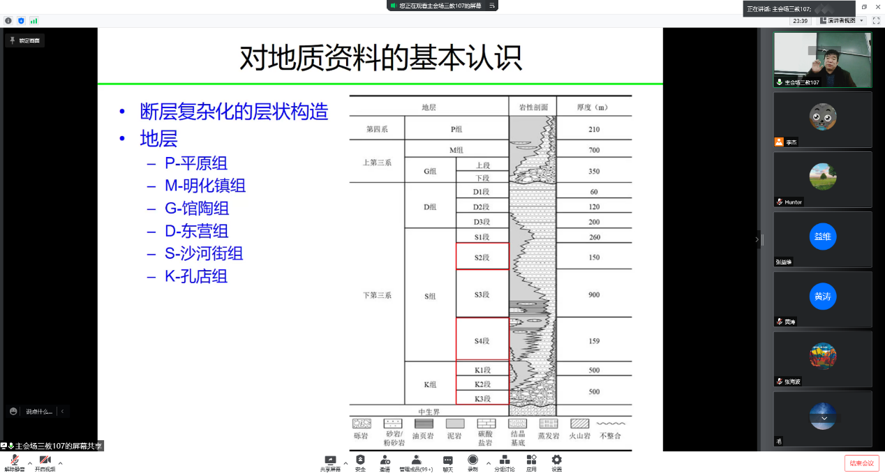 蔚宝华老师从钻井工程方向对整个赛题进行了详细分析。结合往届参赛资料情况和今年赛题的特色,主要针对钻井工程设计的整个流程进行了讲解。蔚老师提出,参赛选手应注意对于竞赛类题目,要注重找到赛题赛点,要注重创新性,才能脱颖而出。
