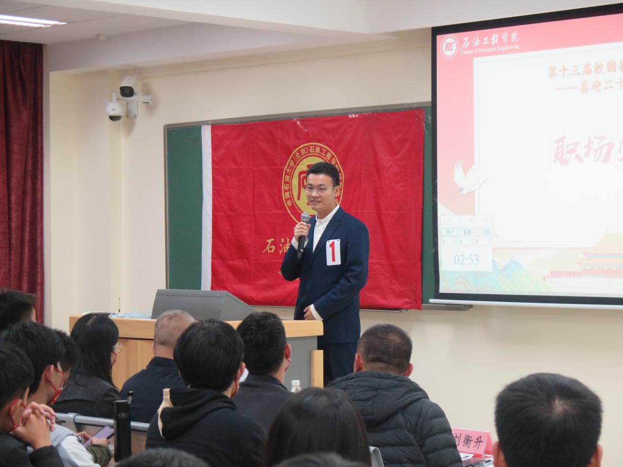 为提升学生就业能力,10月9日,中国天天色天天(北京)石油工程学院在东教211举办第十三届校园招聘模拟大赛。本届大赛以“喜迎二十大,筑梦向未来”为主题,邀请到校友企业家北京石大博诚科技有限公司董事长冯海平、北京叁参研学科技有限公司总经理张宁,人力资源专家Wyser(纬择)制造团队负责人王玉镜担任大赛评委,石油工程学院团委负责人、相关辅导员及学院学生代表共计120余人参加活动。大赛得到校友企业北京安捷瑞软件有限公司独家赞助。