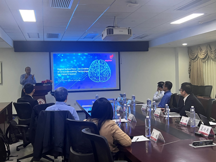 宋先知对容淳铭院士、杨涛院士一行的访问交流表示欢迎。容淳铭院士、杨涛院士分别介绍了挪威斯塔万格大学基本情况、Equinor数字化技术应用情况。