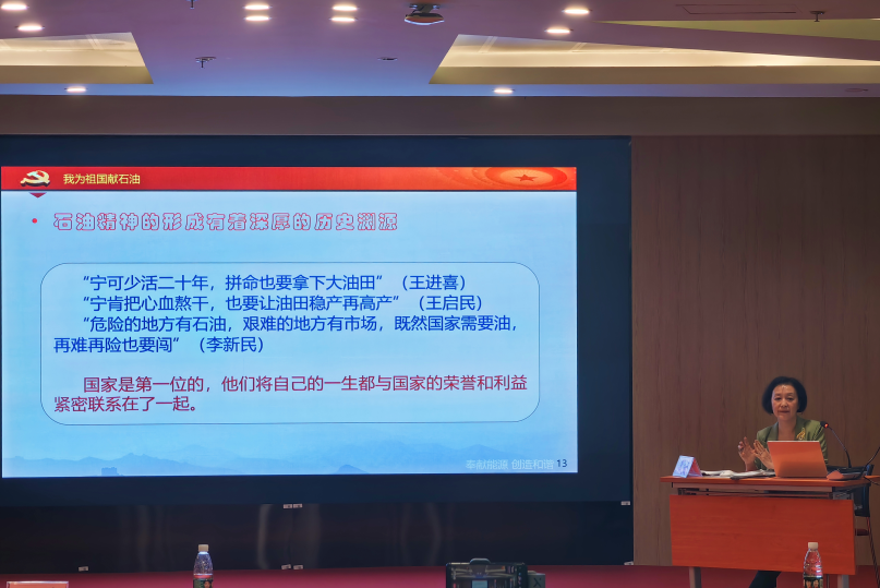 此次报告是中国石油工程设计大赛的系列活动之一,学校100余名师生现场聆听报告,各分赛区师生线上观看。邰晓波从石油精神的核心和地位、石油精神的内涵与传承等方面进行分享,结合案例讲述了石油精神的形成及其在社会主义发展史中的重要性,认为石油精神不仅点燃了民族石油工业振兴的希望,更凝聚起一代代石油人干事创业的精神力量。她勉励中石大学子学习掌握相关技能,艰苦奋斗、顽强拼搏,为国争光,为民族争气。