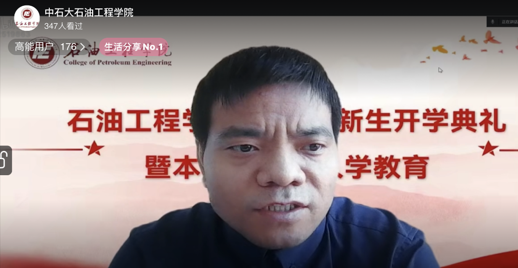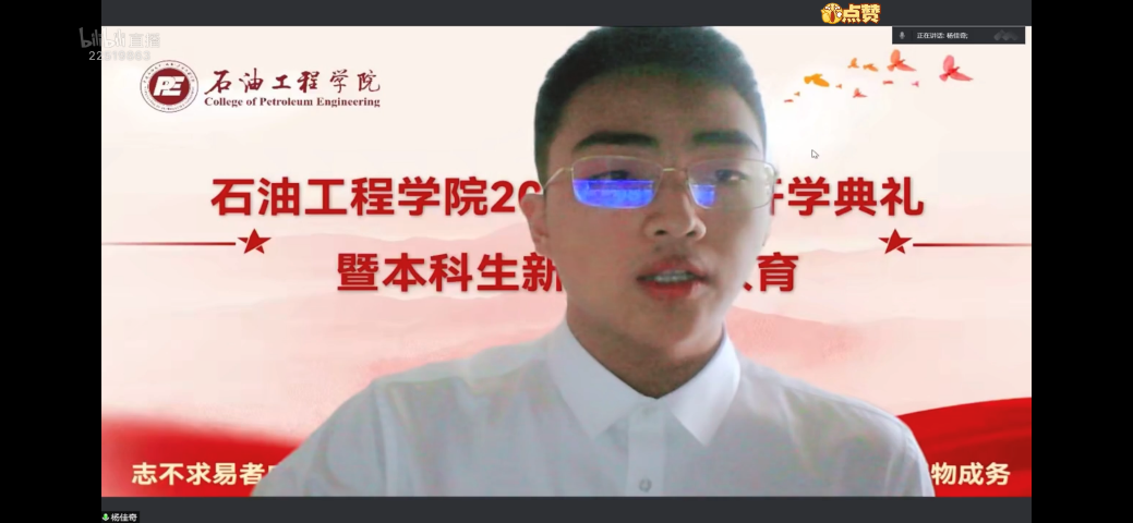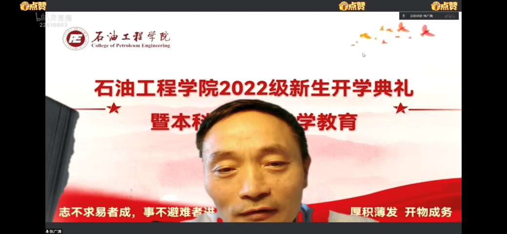 8月27日上午,石油工程学院举办2022级新生开学典礼暨本科生新生入学教育,中国天天色天天(北京)副校长张广清,石油工程学院党委书记黄世军,副院长刘伟、王敬、王宴滨,党委副书记刘东东,团委书记肖亚楠,2022级研究生辅导员出席本次活动。活动由2022级本科生辅导员李季龙主持,全体2022级新生通过哔哩哔哩直播观看典礼。