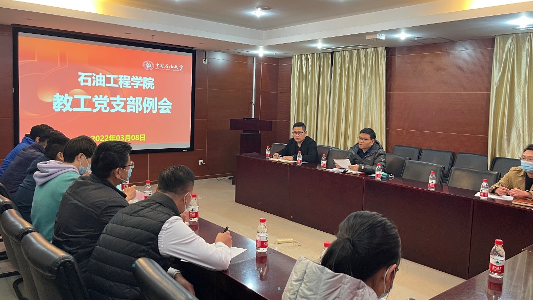 会上,刘东东基于“一图一表双文件”解读了“党建育人共同体”建设方案,并针对《石油工程学院纵向党支部运行管理规定(试行)》《石油工程学院纵向党支部评价考核办法(试行)》《石油工程学院2022年纵向党支部工作月历》进行意见征集。与会人员结合实际情况,针对纵向党支部基本任务、思想导师和业务导师职责、“党支部工作创新”品牌建设计划等进行交流和探讨。
