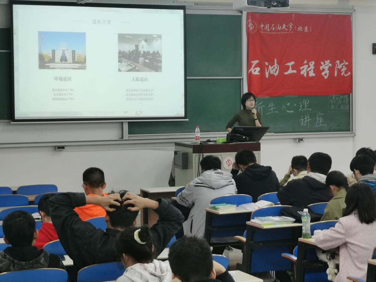 为全面贯彻落实全国和北京高校思想政治工作会议部署,不断加强和改进石工学院学生心理素质教育工作,引导学生把自我发展与时代呼唤有机结合起来,培育自尊自信、理性平和、积极向上的健康心态,10月30日晚,石工学院2020级新生心理健康教育培训在第三教学楼206教室成功举办。本次培训邀请到心理咨询中心王玥乔老师以及六十余名学生参与其中。