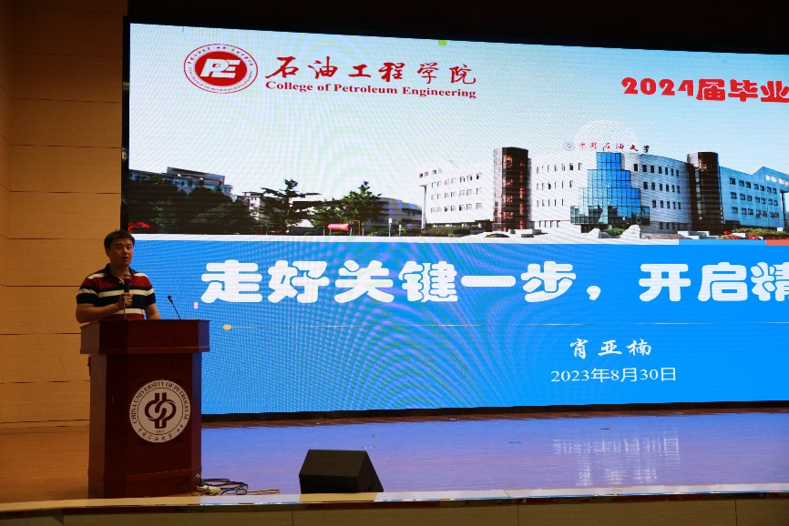 肖亚楠对学院近几年毕业生的就业数据进行了分析,同时解析了2024届毕业生就业形势、学院就业政策、就业准备等相关内容,并就学院违约管理办法展开解读,最后对石油工程院2024届毕业学子表达了衷心的祝福,愿各位同学如愿找到心仪工作。