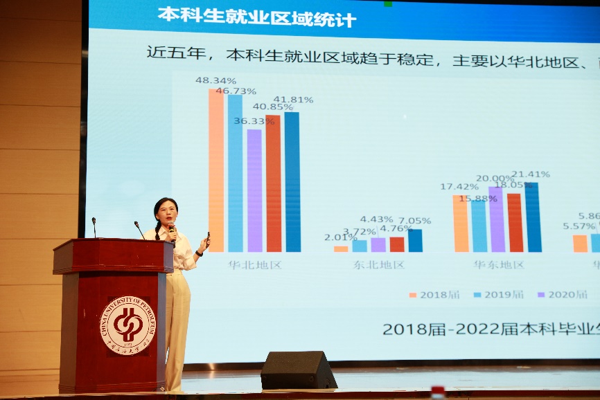 范晓静解读了学校的就业情况和就业政策。他详细讲解了毕业生必须知道的十条就业知识,涵盖了就业手续办理流程及注意事项,简历、求职面试方法,就业信息获取渠道等多方面。