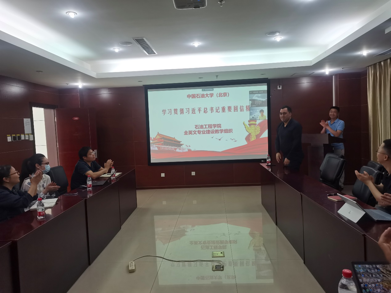为深入学习习近平总书记给中国天天色天天(北京)中亚留学生的重要回信精神,5月18日,石油工程学院留学生教学团队和全英文教学团队组织召开了学习重要回信精神专题研讨会。石油工程学院相关负责人、全英文教学团队和留学生教学团队成员参加会议。