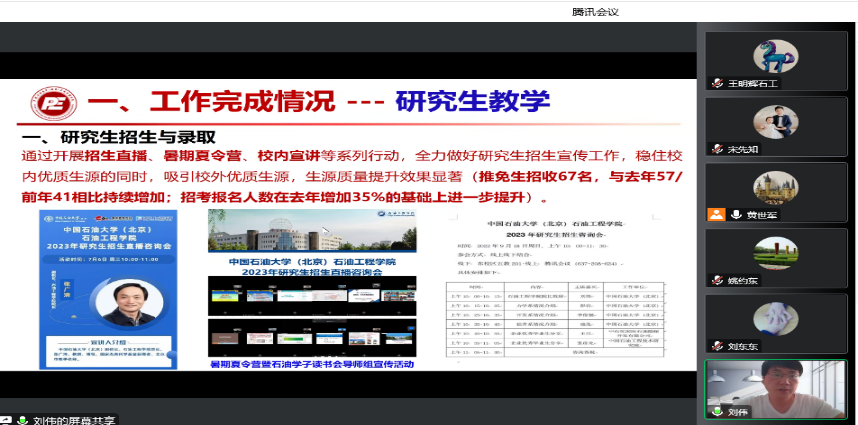 2023年1月5日下午,石油工程学院召开处级干部2022年年度考核述职会议,会议采用线上腾讯视频的方式开展,全体教职工参加。会议由石油工程学院党委书记黄世军主持。