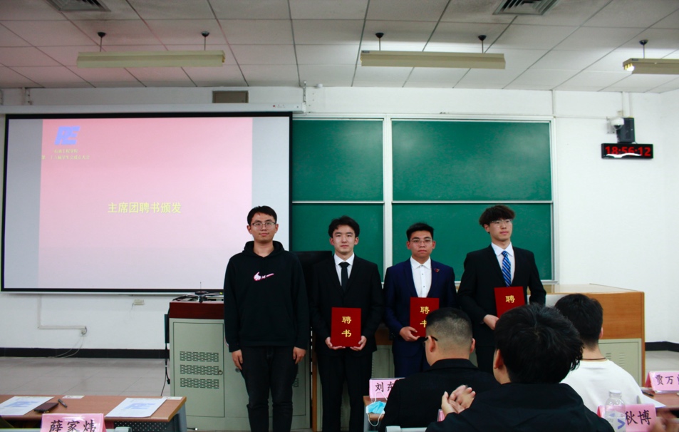 紧接着是聘书颁发环节,指导老师贾万良为主席团颁发聘书。