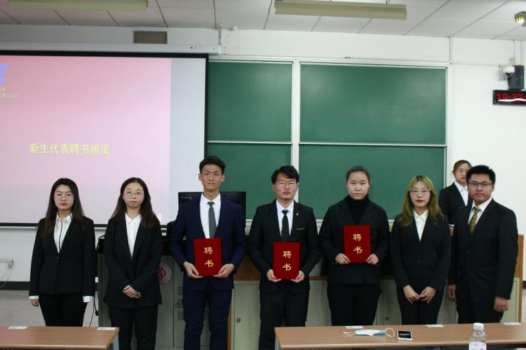主席团为学生会干事颁发聘书。