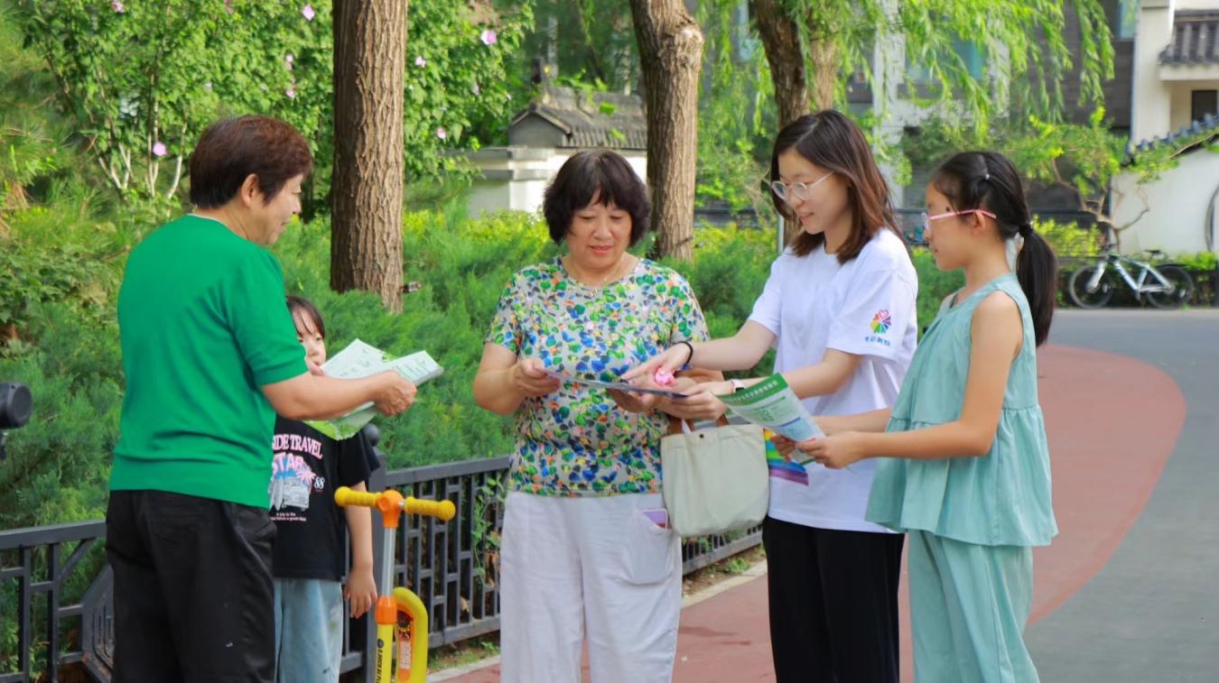 在家庭层面,团队邀请家长与孩子们共同为社区居民发放环保、防诈骗三折页,为构建平安社区奉献力量;