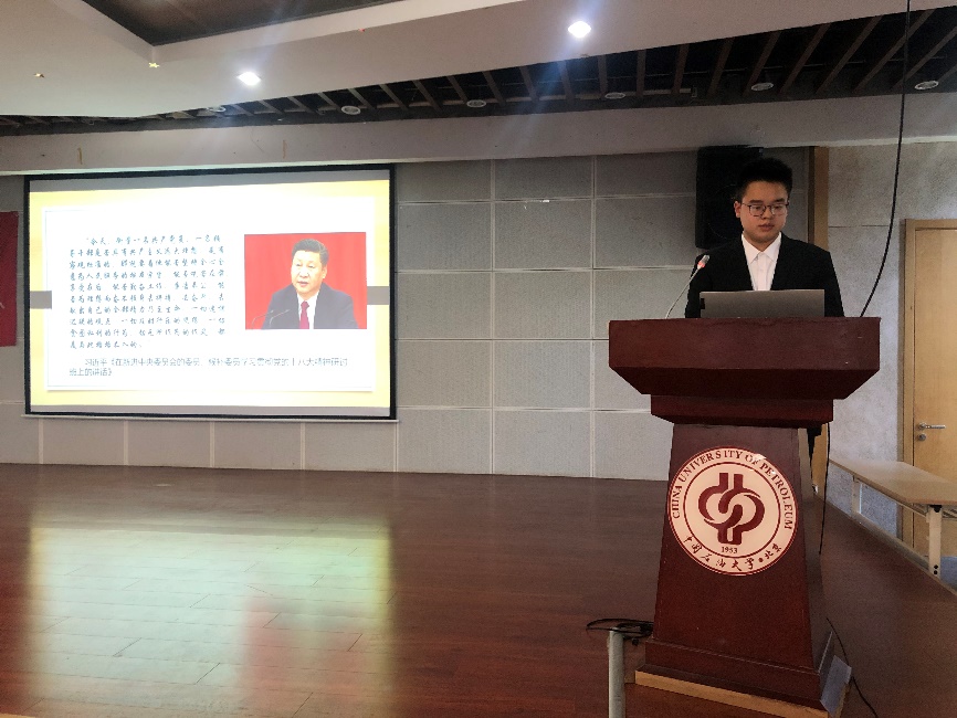 石工学院优秀志愿者代表吕煜宸讲述了自己的志愿服务经历。他表示在个人和班级志愿服务中,自己以理论为支撑、以实践为根基、以获得明显成效为目标,带领班级同学坚持将班团主题活动与志愿服务相结合,将青年志愿者的爱心与关怀传递进社会,将志愿精神辐射到更广阔空间。