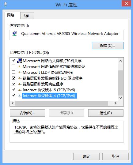 Ñ¡ÖÐÐèҪʹÓõÄÎÞÏßÍø¿¨Á¬½Óͼ±ê£¬ÓÒ¼üµã»÷ÊôÐÔ£¬ÈçÏÂͼËùʾ£º