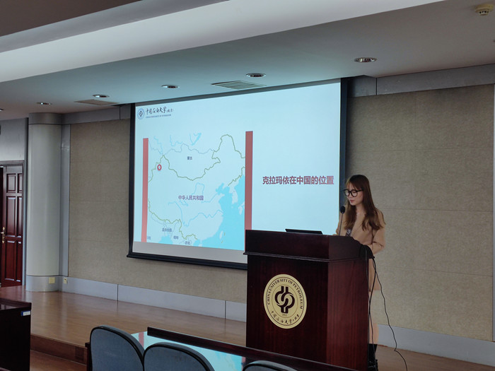 In order to promote the international students of China University of Petroleum (Beijing) to understand the spirit of China Petroleum, and guide international students to learn and understand the spirit of petroleum, the College of International Education invited the Master of Chinese International Education from the School of Foreign Languages Du Chaoqun in Conference Room 306 of the International Exchange Center for China University of Petroleum(Beijing) international students gave a lecture on the spirit of petroleum "Karamay-Desert Beauty, Pearl of the Gobi" on October 14th..