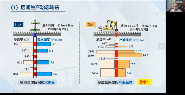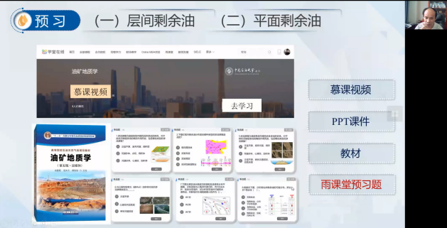 会议第二阶段为示范课讲授。吴胜和教授以油矿地质学课程“第八章 油气藏开发地质中的动态地质分析”中的“层间剩余油”为主题,从知识点导入、问题链解析、师生互动、信息工具使用、课程思政融入等方面对课堂教学元素进行了展示,讲授了一堂生动的示范课。
