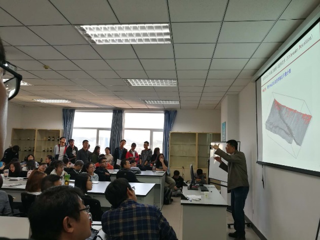 郭秋麟教授首先就盆地与油气系统的基本概念以及主要研究内容进行介绍,并对其中难点加以解释说明;接着介绍了盆地与油气系统模拟的国内外最新研究进展与成果,并对其未来发展方向进行分析;然后,郭教授对盆地模拟中的重难点部分“油气运聚史模拟”进行详细地讲解,从研究机理到动态演示,从研发技术到实例分析,娓娓而谈;最后介绍了输导体系的建模与应用,郭教授的讲解风趣幽默、引人入胜,在场师生反响热烈。