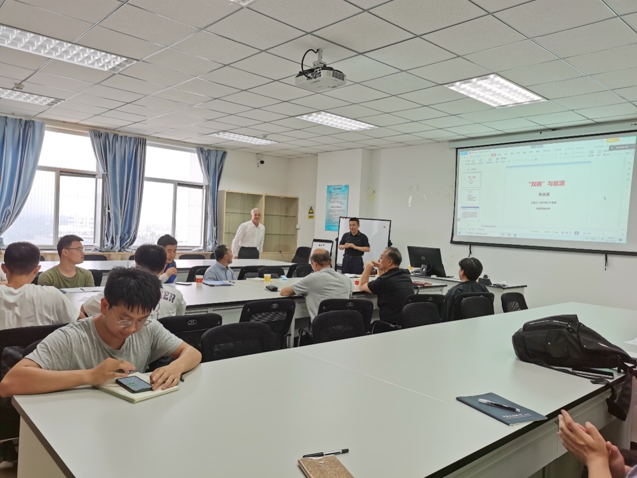 活动伊始,刘成林教授代表现场师生对车长波研究员的到来表示热烈欢迎。随后,学术沙龙正式开始。车长波研究员首先对现下的碳达峰和碳中和等热点围绕科学技术、国家发展与人类命运的关系进行讲述,对我国当下的目标及发展阶段进行讲解,并对国内外的现状对比说明;接着对我国当下的碳排放政策进行了讲解,其关乎一个国家的发展阶段和工业化进程、直接冲击其能源结构和产业结构,甚至影响一个国家的经济发展模式和增长水平;然后对“十四五”能源资源规划以及“十三五”时期的成果进行了列举,并对我国能源资源形势进行了自身的概括以及与国内外的对比说明;最后讲述了“双碳”条件下的能源路径,包括能源结构、各单位及高校的战略和国家能源安全面临的形势。车长波研究员的讲解细致严谨、引人入胜,在场师生反响热烈。