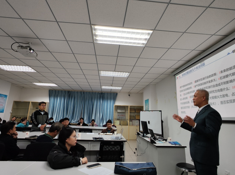 车长波研究员从党的二十大报告对能源资源的重要论述、习近平总书记对能源资源的重要论述展开讨论,表明了习总书记和党中央对能源资源的重视,及进一步加大对油气勘探开发力度的决心;对能源资源的基本形势和特点以及能源资源的潜力及发展趋势进行了分析,强调了我国油气对外依存度持续增加,形势严峻,呼吁同学们积极应用自己的智慧、所学知识和高科技手段进行国内复杂油田的油气勘探与开发,要坚决贯彻习总书记的重要指示,将能源的饭碗牢牢端在自己的手上;总结了能源资源的战略对策,并针对同学们提出的一些相关问题进行解答,希望大家积极突破油气勘探开发技术,为祖国贡献更多的油气。