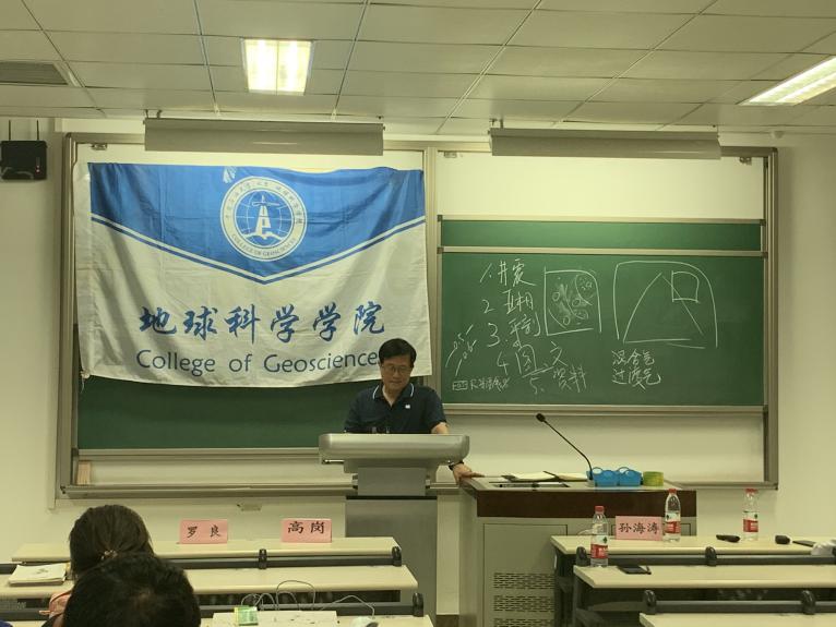 首先,四位指导教师根据专业方向不同,各自进行了系统讲授。罗良老师就构造方面的比赛内容进行讲解,其中在构造变形成因这一问题中,罗老师特别强调了构造变形的外因是挤压作用,但与此同时还要注意构造变形期间是否有早期的伸展运动和走滑变形,内因则可以将思考重心放在两套膏盐滑的变形方面上;孙海涛老师就地层精细对比、明确研究对象、确定沉积相类型、理清沉积相展布、分析沉积相演化、建立沉积相模式等方面进行讲解,为大家理清了沉积相分析的具体研究思路,并强调定相过程中,需要注意沉积相的纵横向过度关系;高岗老师则特别讲解了制图方面的细枝末节问题,包括油气成熟度分析,烃源岩生烃史、构造演化等方面,给大家阐明了相关方法;吴欣松老师主要就油层精细对比、沉积微相分析、有效厚度标准、气藏类型分析、三维地震建模、储量计算与评价等方面进行讲解,对气藏评价的基本内容进行了充分解读,最后特意强调了井震结合,标志层对比、多纬互动、孔量计算等问题。