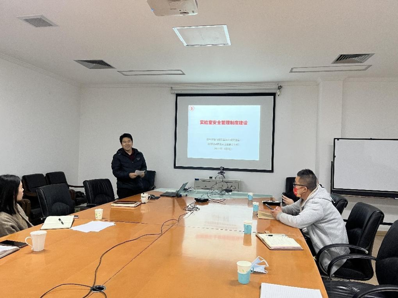 下一项由实验室师生宝老师带领大家学习实验室安全管理相关事项,师生宝老师总结了自身在安全管理方面的一些经验,并建议各位教职工要把实验室安全管理制度放在心上而不只是挂在墙上。