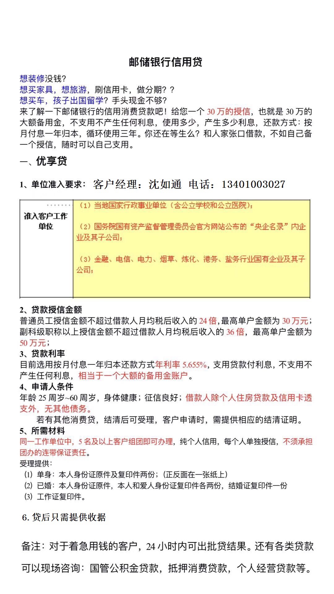 关于中国邮政储蓄银行为教职工办理信用贷业务的通知 |