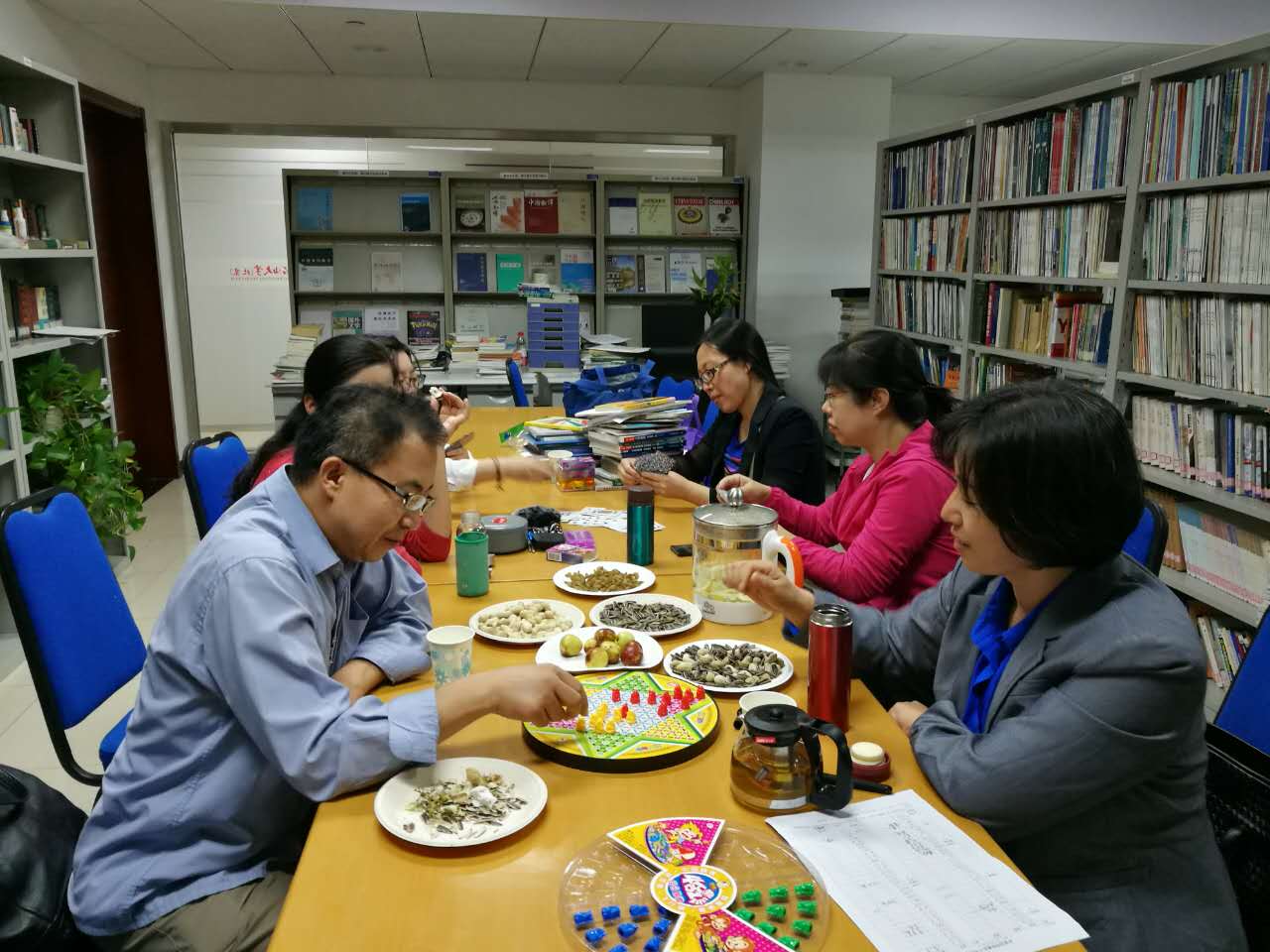 2016年9月28日和29日下午三点,外国语学院工会在资料室开展了棋牌活动,有近三十位教职工参加。棋牌是集科学性、知识性、竞技性、趣味性于一体,以脑力运动为主的活动。工会为教职工提供了扑克、跳棋、象棋、五子棋等种类丰富的棋牌,大家可以选择任意棋牌,自由组合参赛。棋牌比赛考验和锻炼人的记忆力、耐心和智慧,能够提高人的记忆力和大脑思维的能力,并培养大家良好的品德修养和紧密协作、适应环境的团队精神。这次活动增进了友谊,陶冶了情操。在活动过程中笑声不断,大家心境畅达,心情愉快。棋牌活动缓解了工作的紧张,也许还延迟了些许衰老。