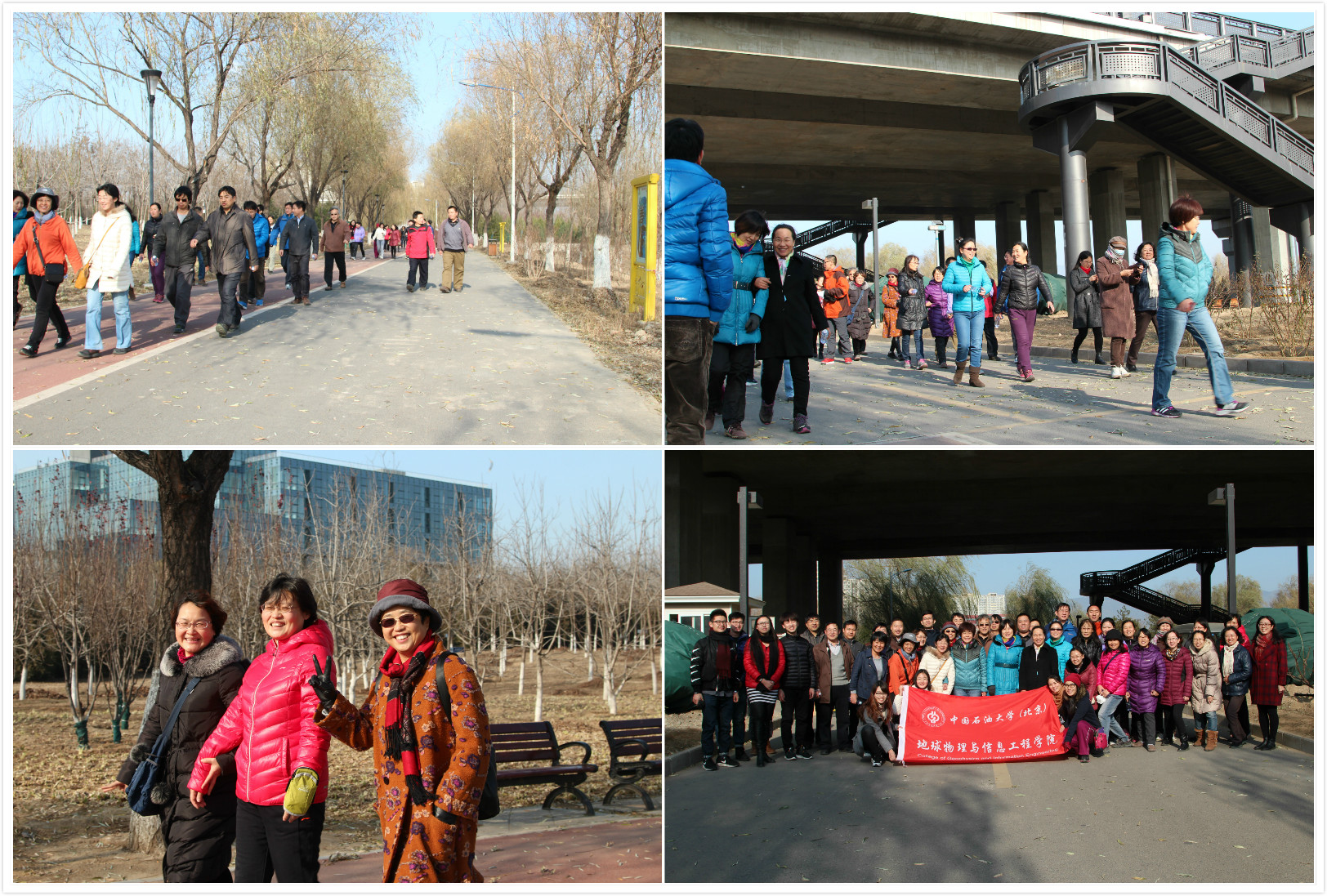 11月30日中午12:30,中国天天色天天(北京)地球物理与信息工程学院教职工徒步长走活动正式开启。在昌平区南环大桥下集体合影后,信息学院40余名教职工踏上了长达五公里的行程。