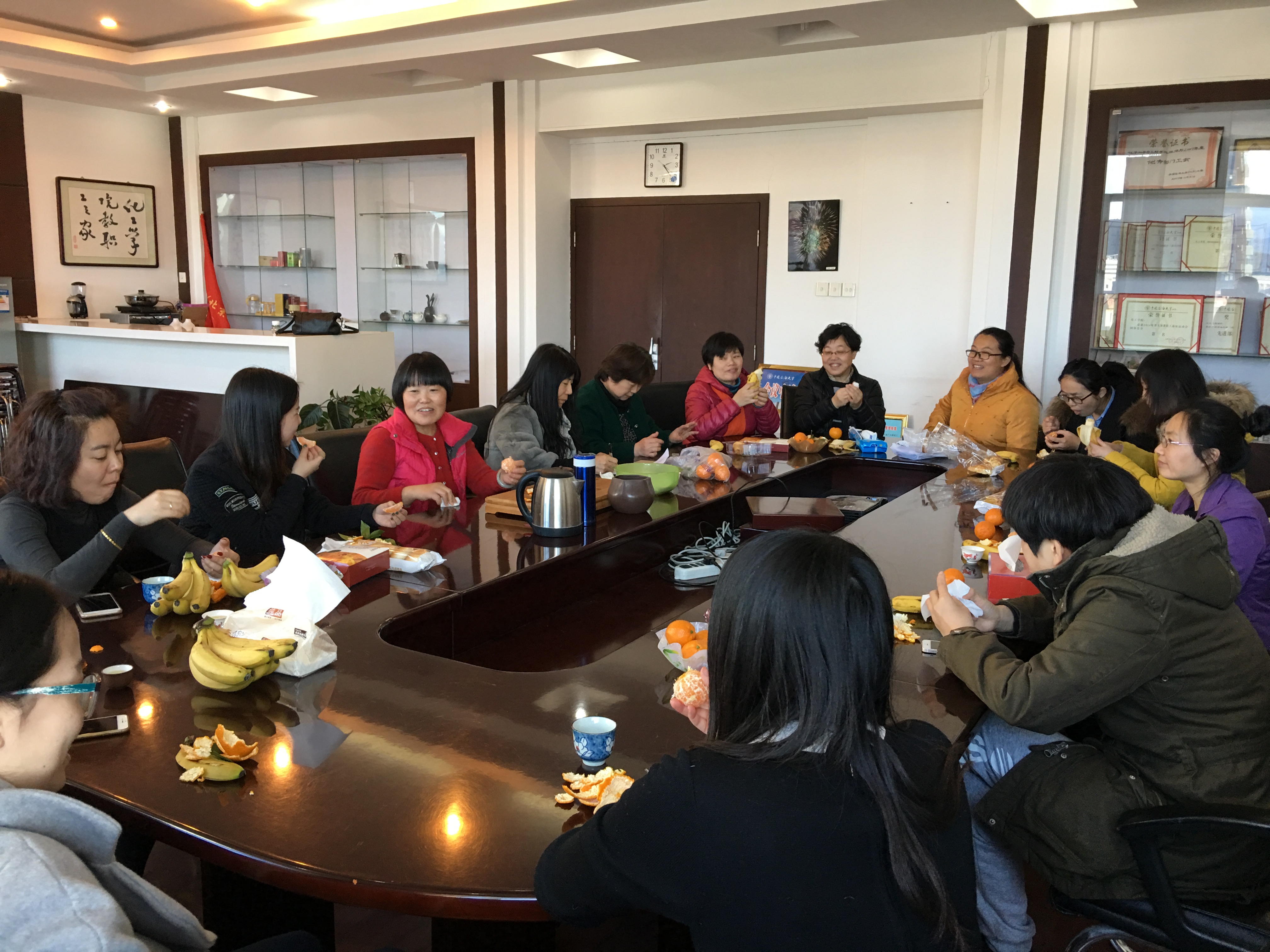 当天下午,工会为大家购买了水果和各式甜点,主席李瑞丽老师还精心准备了功夫茶供大家细细品味。活动中,老师们围坐在一起边吃边聊,或说说工作或谈谈生活,在交谈中气氛也逐渐热烈,整间屋子充满了欢声笑语。当谈及到个人生活的时候,主席和老师们特别关注到年轻女老师的个人问题,纷纷积极主动地挖掘身边资源,争取早日帮单身老师找到心仪的伴侣。