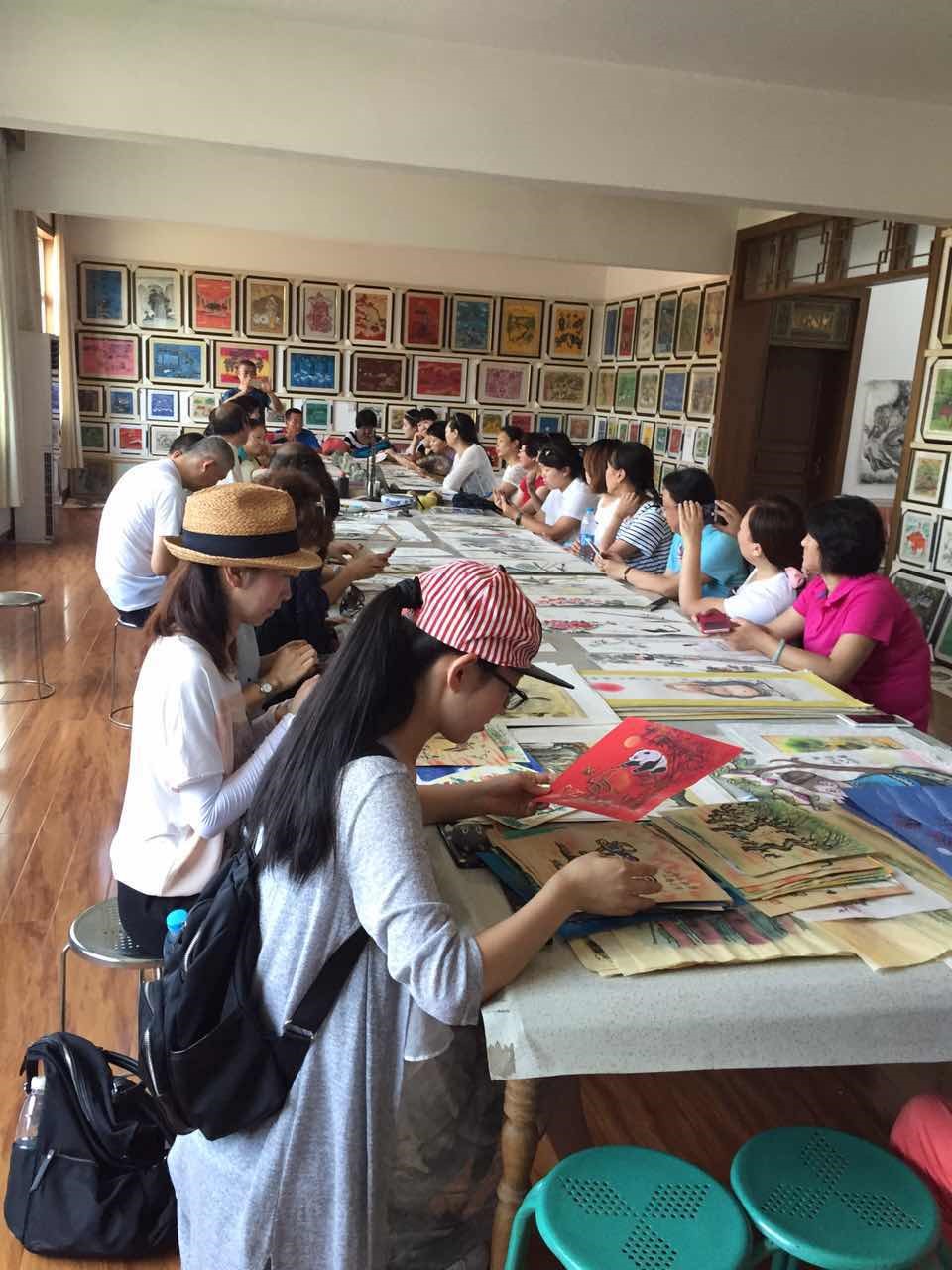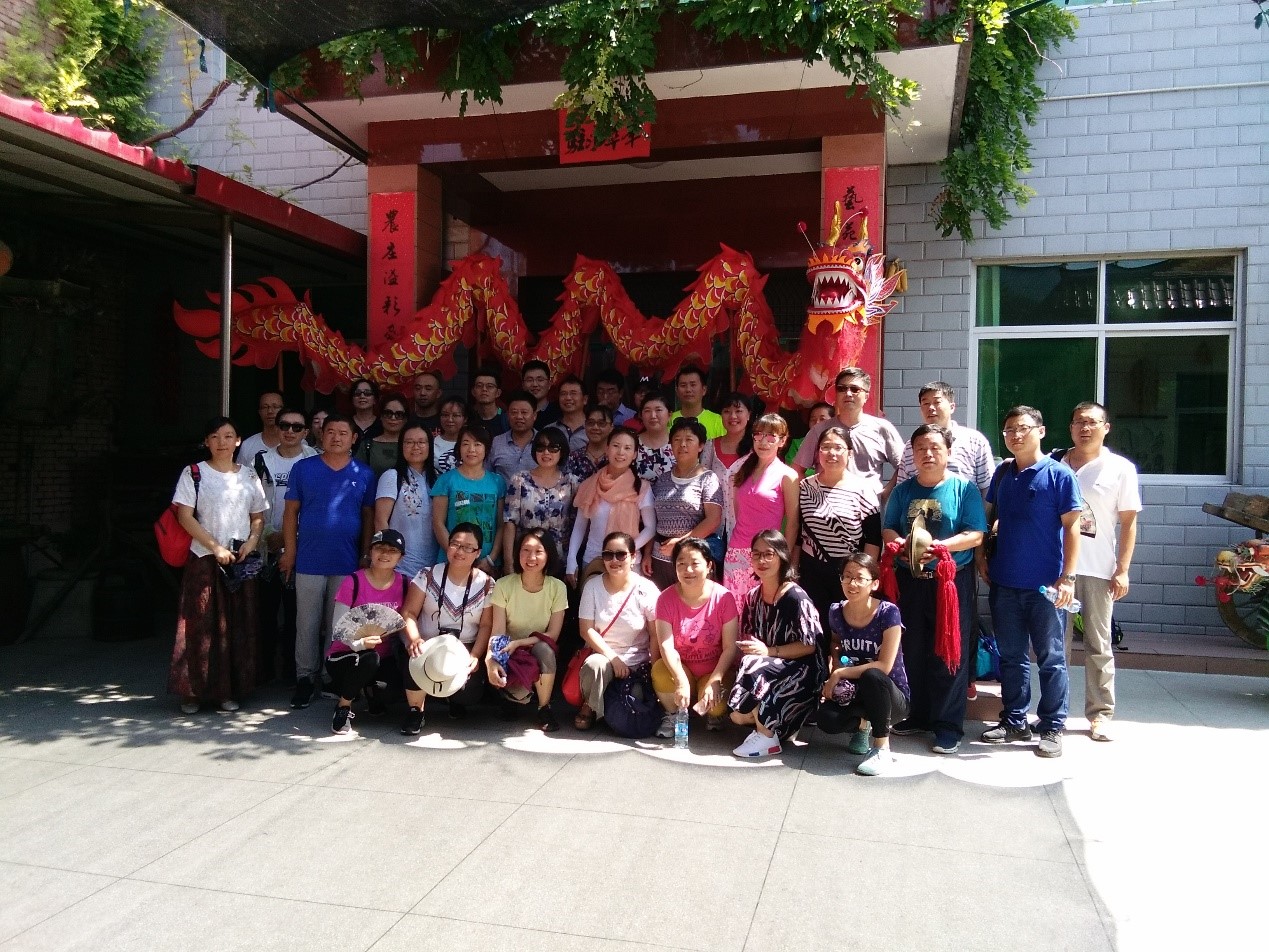 7月18日下午,两校老师参观了户县农民画家村。户县农民画源于民间,在陕西关中地区的剪纸、壁画、年画、刺绣等汉族民间艺术基础上衍变,以朴实的绘画语言,详尽而生动地记录了农村生产劳动的壮观场面、热烈活泼的节庆场景和绚丽多彩的汉族民风民俗。老师们参观了新农村的村荣村貌,欣赏了乡土气息浓重的乡村舞蹈、跑旱船、跑马、舞龙等表演。在农民艺术家的指导下,部分老师还兴致勃勃地参加活动,打鼓、跑马、舞龙,实际的体验过程使老师们非常开心。在此之后,老师们来到著名农民画家张青山的家里,欣赏了张老师的大量画作,聆听了张老师的传奇经历。张老师还现场挥毫,展示了牡丹花创作,让老师们大饱眼福。晚上,在附中李校长的倡议与组织下,两校教师进行了交流联谊,加深了相互了解。