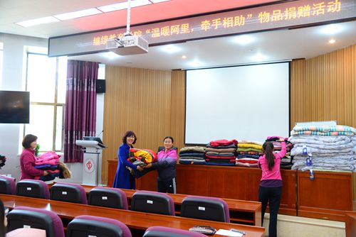 ] 习近平总书记特别提出将扶贫工作落到实处的点对点精准扶贫策略。北京市昌平区与西藏当雄县是对口援建单位,作为扶贫项目之一,受昌平区委组织部委托,我院首次承办了“西藏自治区拉萨市当雄县基层干部人才培训班”。通过培训班学员,我们了解到西藏阿里地处边防,气候寒冷,乡亲们无私支援边防建设,缺少御寒衣物。因此,党支部及工会共同倡导“温暖阿里,牵手相助”的捐赠活动。