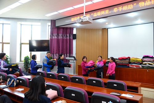 2017年10月19日下午,继续教育学院举办“温暖阿里,牵手互助”物品捐赠活动。学院党支部及工会共同发出倡议,学院员工积极响应,将家里闲置的、新的未曾使用过的、或是新采购的御寒物品捐赠出来,学院员工共捐赠棉衣、棉被褥、毛衣、毛裤、皮衣、夹衣、孩童服装等御寒物品140件。