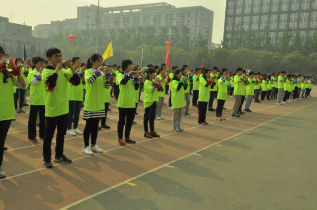 当山红红书记宣布运动会开始,无数的彩色气球飞上天空,《小苹果》欢快的音乐响起,石大教工陶笛协会的老师和学生一起,跑步进入会场,组成近200人的方阵,整齐排列在主席台下,随着律动的节奏,开始吹奏,悠扬的笛声传遍整个操场。我们的心情随着五颜六色的气球一起放飞,每位老师们脸上洋溢着快乐和兴奋,跟学生们在一起表演,顿时感觉自己年轻了许多。主席台上的校领导频频点头,被精彩的表演所感染。全场的观众为老师们的表演鼓掌喝彩。