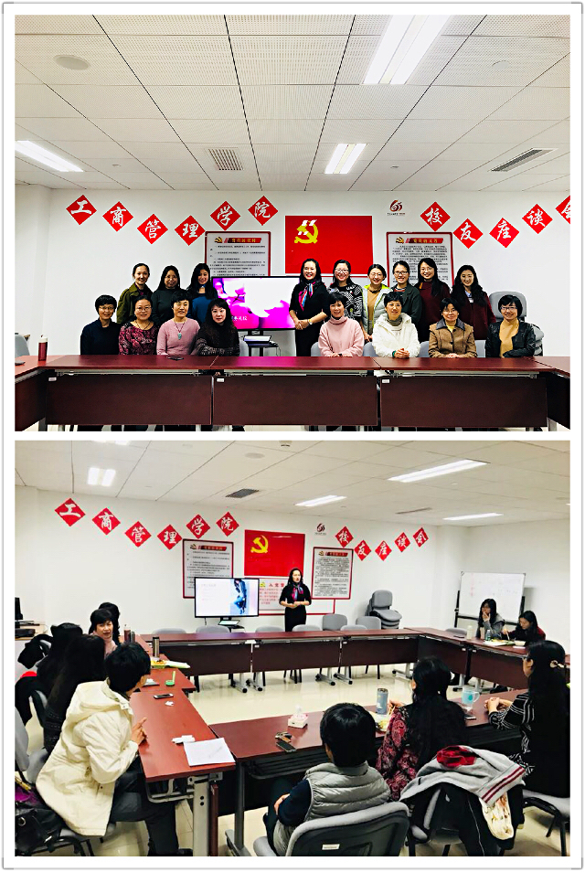 ] 为活跃女教工的业余生活,提升个人形象,商学院工会于11月15日中午12:00组织了第一期美女沙龙活动。此次活动主题是精致女人之商务礼仪。活动由女工委员曹娜主持,曾叶丽老师主讲,近二十名女教工参加活动。曾叶丽老师通过优美的图片和视频,生动地讲解了女性商务礼仪的四个方面:着装标准、配色、妆容和仪态。主讲人还通过现场互动增强了大家的积极性,加深了对女性商务礼仪知识的理解。大家在高涨的学习氛围中掌握了许多实用性极强的商务礼仪知识,并加强了相互间的了解与沟通。以后,商学院将定期举办内容丰富、形式多样的女工活动,以丰富女教工的文化生活,提升女教工的幸福感。