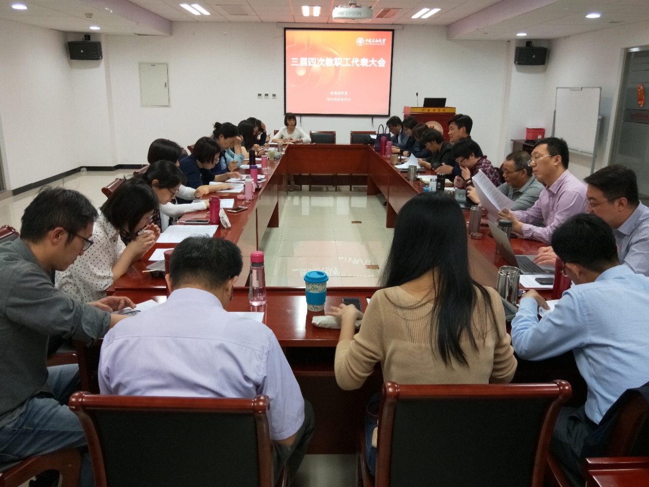 2019年5月9日下午14:00,外国语学院工会组织三届四次教代会会议讨论2018年奖励性绩效工资分配实施办法、各类常规工作付酬办法、2018年科研绩效奖励办法。会议由学院党委书记李玉财主持。