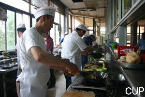 后勤服务总公司工会为丰富职工生活,于2008年6月16日13:30,在饮食中心青年园餐厅举办了 “饮食杯”好丈夫厨艺比赛。