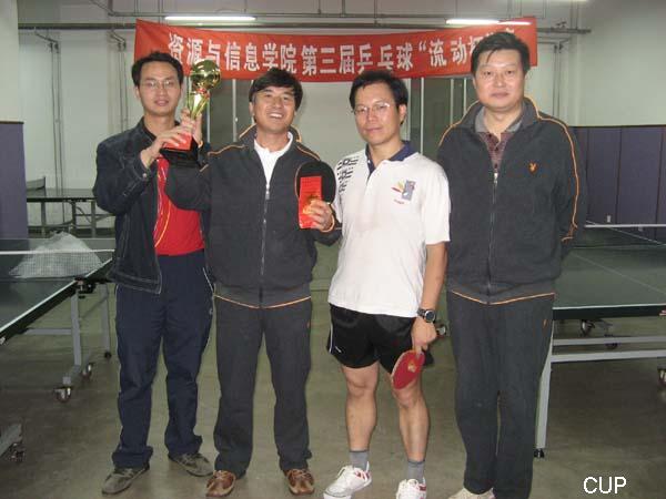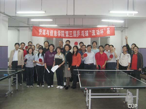 赛前选手们全身心地投入到热身活动中,他们个个摩拳擦掌,跃跃欲试。比赛中,队员们挥汗如雨,始终以饱满的热情、奋力拼搏。比赛精彩纷呈,加油的呐喊声连连不断,赛场气氛热烈而友好。经过精彩、紧张的角逐,最终地球科学系荣获团体赛第一名,捧回“流动杯”奖杯,资源与环境科学系和信息科学与地球物理系分别获得团体第二名、第三名。 乒乓球是我国的国球,乒乓球运动深受广大人民群众喜爱,在我院9个教职工文体协会中,乒乓球协会的人数最多,有近50人,其中,不乏乒乓球高手。正因如此,我院乒乓球运动开展得蓬蓬勃勃。在院教职工活动中心,每天都有乒乓球爱好者活动的身影。我们希望借此比赛之机,进一步推动我院教职工各项文体活动的开展,为增强广大教职工的体质,增进教职工间的友谊和交流,为构建和谐院系而努力。