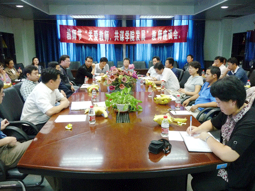 2009年9月10日,资源与信息学院召开了以“关爱教师,共谋学院发展”为主题的青年教师座谈会和教授座谈会。