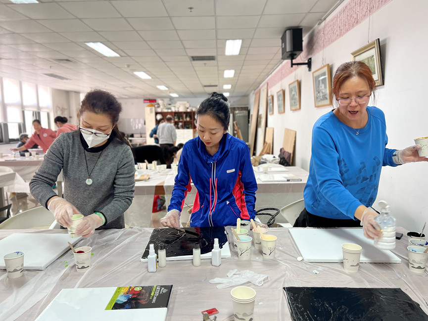 ] 为庆祝国际“三八”妇女节,我院工会组织女教职工进行流体画创作活动。流体画是用颜料倾倒在画面上,任其自然流淌而形成的现代抽象画,呈现效果千变万化,即使没有任何绘画基础,也可以画出很惊艳的作品。在我校美术教师李玲的讲解和帮助下,教师们积极创作,一个个充满想象力、色彩缤纷的画面展现出来,在制作过程中,老师们纷纷表示创作的过程轻松愉悦,陶冶情操,回味无穷,在充满欢乐的笑声中完成了流体画的制作。通过本次活动,不仅使老师们的压力得到释放,还提高了大家的审美能力,在感受快乐与成就的同时,也激励着教师们保持饱满的热情积极的投身到工作中。