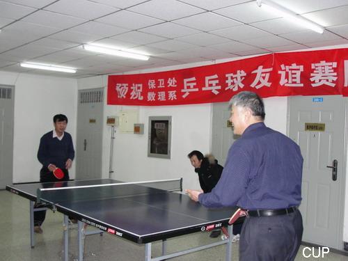 2009年12月16日下午,数理系与保卫处在基础楼三层进行了一场乒乓球友谊赛。这次活动,促进了数理系与保卫处之间的交流,丰富了老师们的课余生活,加强了老师们积极参加体育活动,锻炼身体的意识,弘扬了国球文化,提高了竞技水平,展现了蓬勃向上的精神风貌,营造了和谐发展氛围。