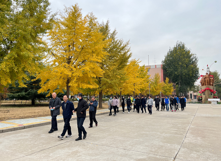 ] 10月27日中午,学校东校园南广场彩车前,院党委书记姜立国、副院长宋兆杰及近五十位老师,整装出发,非常规院组织的“喜庆二十大”秋季健步走活动顺利启动。