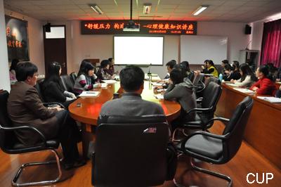 3月9日下午,远程教育学院聘请学校心理咨询中心主任张玉英老师,为全体员工进行了“舒缓压力、构建和谐”为主题的心理健康知识培训。这是学院党支部“创先争优”活动和学院工会纪念“三.八”妇女节系列活动内容之一。
