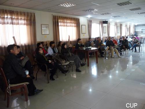 交流活动期间,王仲民老师介绍了我院教职工活动中心的特色,刘洛夫老师代表学院对各位工会同僚的到来表达了欢迎,地大校工会常务副主席关主席表达了此次参观交流的目的,并就“工会之家”建设心得进行了交流。我院上届工会主席尹秀英老师结合自己多年工会工作的经历和心得,向所有参加交流参观的人员介绍了地科学院“工会之家”的建设和发展,重点介绍了我院“工会之家”和谐民主的建家理念、院教职工活动中心的建设与使用和工会工作管理规范化等,毫无保留的将她多年宝贵的工作经验和心得与大家进行了交流。